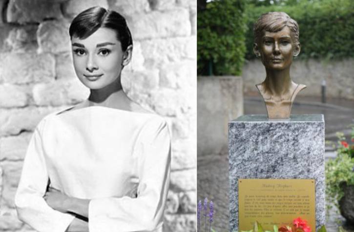 The monument is placed in the Audrey Hepburn Square in Tolochenaz, Switzerland. The bust of the actress was donated by her sons to the town of Tolochenaz in 2012.
