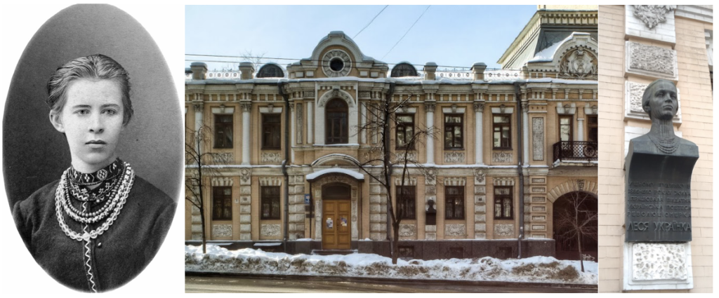 Lesya Ukrainka (b. Novohrad-Volynskyi, Russian Empire, 1871 – d. 1913, Surami, Tiflis Governorate, Russian Empire) was a Ukrainian writer, best known for her poems and plays. She was also an active political and feminist activist. Among her most renowned works are the collections of poems On the wings of songs (1893), Thoughts and Dreams (1899), Echos (1902); the epic poem Ancient fairy tale (1893), One word (1903); plays Princess (1913), Cassandra (1903—1907), In the Catacombs (1905), and Forest Song (1911). Ukrainka’s illness made it necessary for her to travel to places where the climate was dry, and, as a result, she spent extended periods of time in Germany, Austria, Italy, Bulgaria, Crimea, the Caucasus, and Egypt. Lesya Ukrainka actively opposed Russian tsarism and was a member of Ukrainian Marxist organizations. In 1902 she translated the Communist Manifesto into Ukrainian. She was briefly arrested in 1907 by tsarist police and remained under surveillance thereafter. In 1907, Lesya Ukrainka married Klyment Kvitka, a court official, who was an amateur ethnographer and musicologist. They settled first in Crimea, then moved to Georgia. Ukrainka died on 1 August 1913 in a health resort in Surami, Georgia.