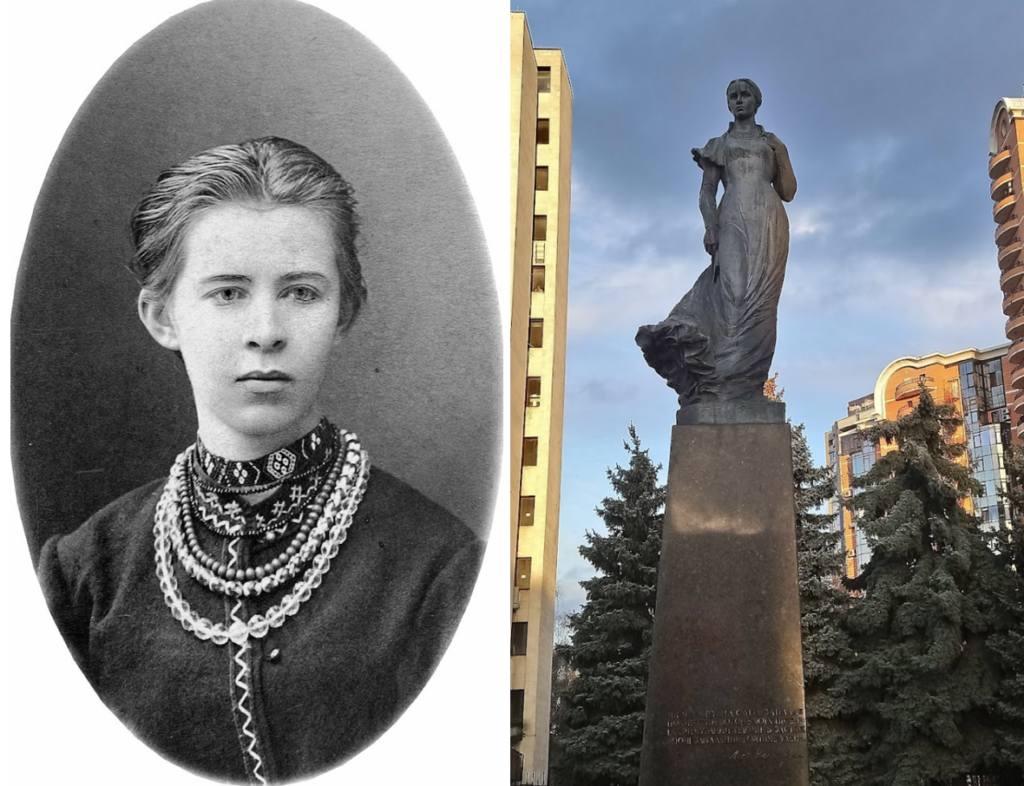Lesya Ukrainka (b. Novohrad-Volynskyi, Russian Empire, 1871 – d. 1913, Surami, Tiflis Governorate, Russian Empire) was a Ukrainian writer, best known for her poems and plays. She was also an active political and feminist activist. Among her most renowned works are the collections of poems On the wings of songs (1893), Thoughts and Dreams (1899), Echos (1902); the epic poem Ancient fairy tale (1893), One word (1903); plays Princess (1913), Cassandra (1903—1907), In the Catacombs (1905), and Forest Song (1911). Ukrainka’s illness made it necessary for her to travel to places where the climate was dry, and, as a result, she spent extended periods of time in Germany, Austria, Italy, Bulgaria, Crimea, the Caucasus, and Egypt. Lesya Ukrainka actively opposed Russian tsarism and was a member of Ukrainian Marxist organizations. In 1902 she translated the Communist Manifesto into Ukrainian. She was briefly arrested in 1907 by tsarist police and remained under surveillance thereafter. In 1907, Lesya Ukrainka married Klyment Kvitka, a court official, who was an amateur ethnographer and musicologist. They settled first in Crimea, then moved to Georgia. Ukrainka died on 1 August 1913 in a health resort in Surami, Georgia.