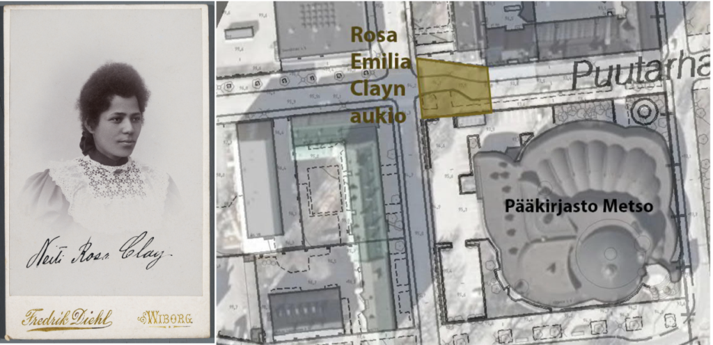 Rosa Emilia Clay (b. Omaruru, present day Namibia, 1875 – d. 1859, Covington, Michigan, US) was a primary school teacher and a choir and theater director who became the first African person to obtain Finnish citizenship. She was born to a British hunter and merchantman Charles William Clay and to an unknown Omarurun woman who was separated from her baby soon after the birth. Since the age of four, she was raised in the Finnish Missionary School and adopted by missionaries Karl August and Ida Sofia Weikkolin, who returned to Finland together with Rosa in 1888. Rosa lived with the Weikkolin family until her adulthood under a very strict discipline. She was also taken to perform publicly in the spiritual meetings as an example of African child baptized and raised to Christianity.