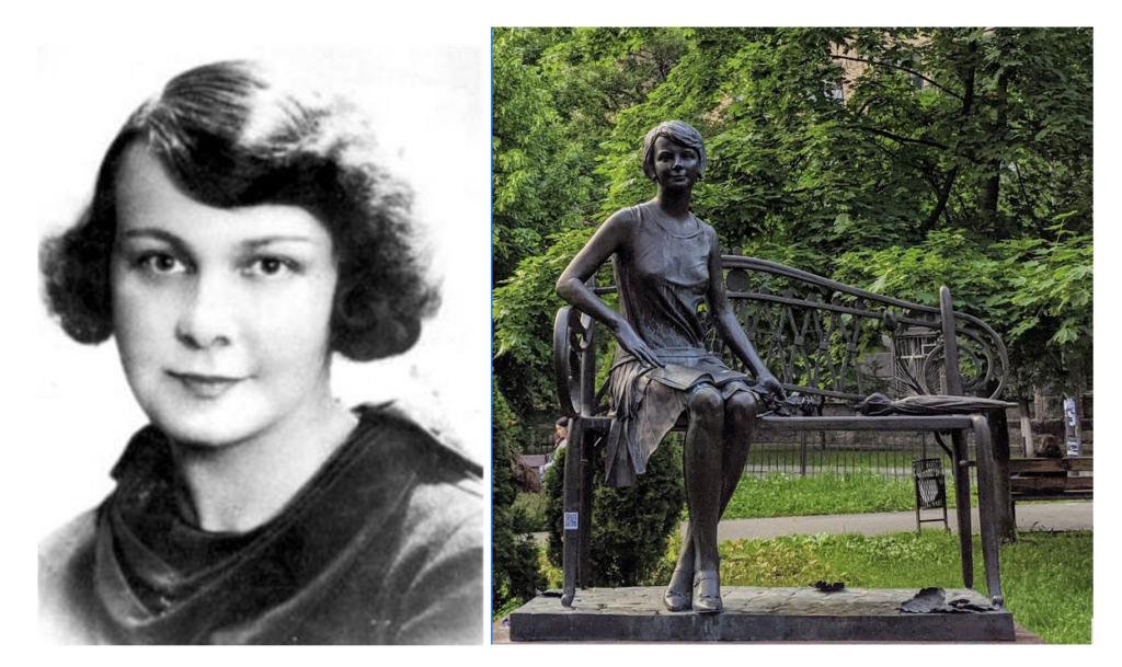 Olena Teliha was born in a village near Moscow, Russia. In 1918, she moved to Kyiv with her family, when her father became a minister in the new UNR government. There they lived through the Ukrainian Civil War. With the Bolshevik occupation, her father emigrated to Czechoslovakia, and the rest of the family joined him in 1923. After her marriage, Olena Ivanivna Teliha moved to Warsaw, Poland, where she lived until the start of WWII. In 1939, like many of the young Ukrainians with whom she associated, Olena Teliha became a member of the Organization of Ukrainian Nationalists, within which she became an activist in cultural and educational matters. In 1941, Olena and her husband Mykhailo Teliha (whom she met and married in Czechoslovakia) moved back to Kyiv, where she expanded her work as a cultural and literary activist, heading the Ukrainian Writers’ Guild and editing a weekly cultural and arts newspaper Litavry. She was finally arrested by the Gestapo and executed, aged 35, in Babi Yar in Kyiv along with her husband. Her wooden cross was erected as monument commemorating Olena Teliha and other Ukrainian nationalists executed in 1942.