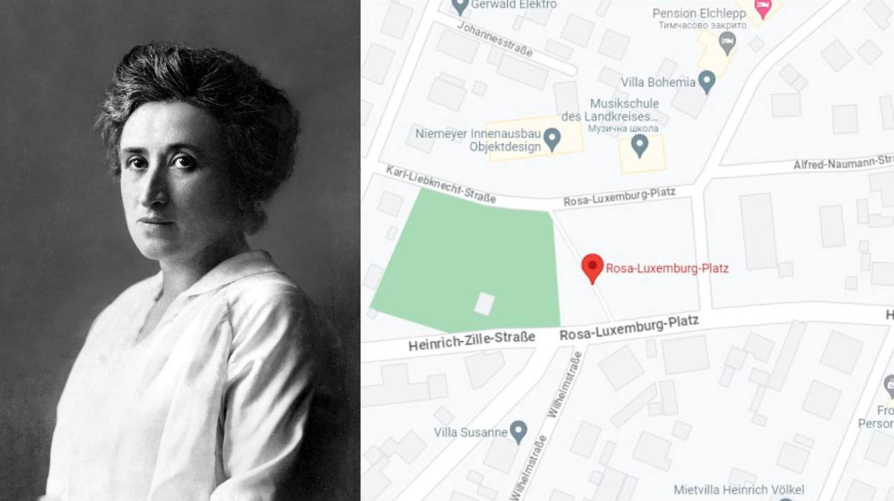 Rosa Luxemburg (b. Zamosc, Poland,1871 – d. 1919, Berlin, Germany), was a Polish and naturalized-German revolutionary socialist, Marxist philosopher and anti-war activist. The main landmarks that relate to her are in Germany and France, the places where she settled and stayed in exile, but also in Poland as she was born there.