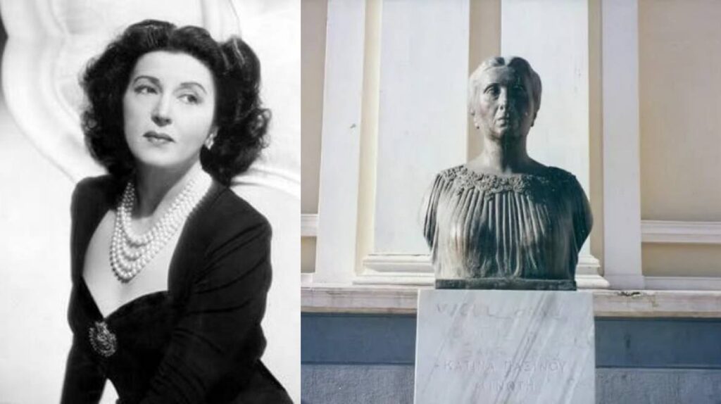 Katina Paxinou (b. Pireus, Greece, 1900– d. 1973, Athens, Greece) was a Greek film and stage actress. She started her stage career in Greece in 1928 and was one of the founding members of the National Theatre of Greece in 1932. The outbreak of World War II found her in the United Kingdom and she later moved to the United States, where she made her film debut in For Whom the Bell Tolls (1943). She appeared in a few more Hollywood films, before returning to Greece in the early 1950s. She trained as an opera singer at the Conservatoire de Musique de Genève and later in Berlin and Vienna. According to her biography in a 1942 Playbill, Paxinou’s family disowned her after she decided to seek a permanent stage career.